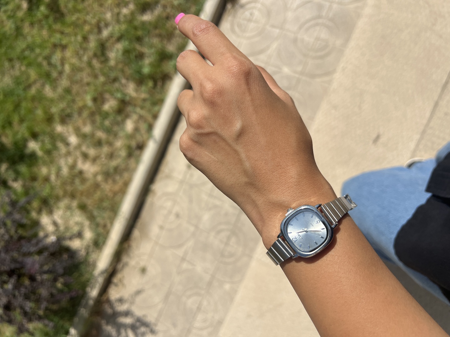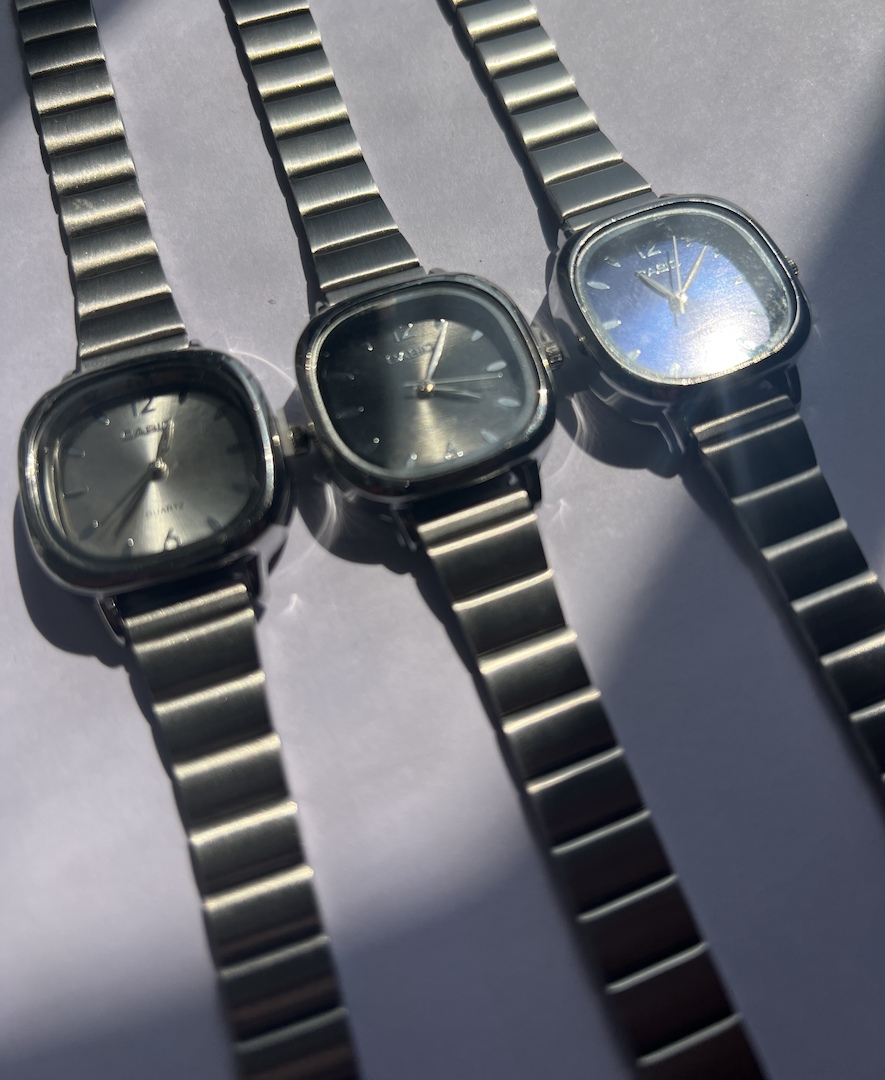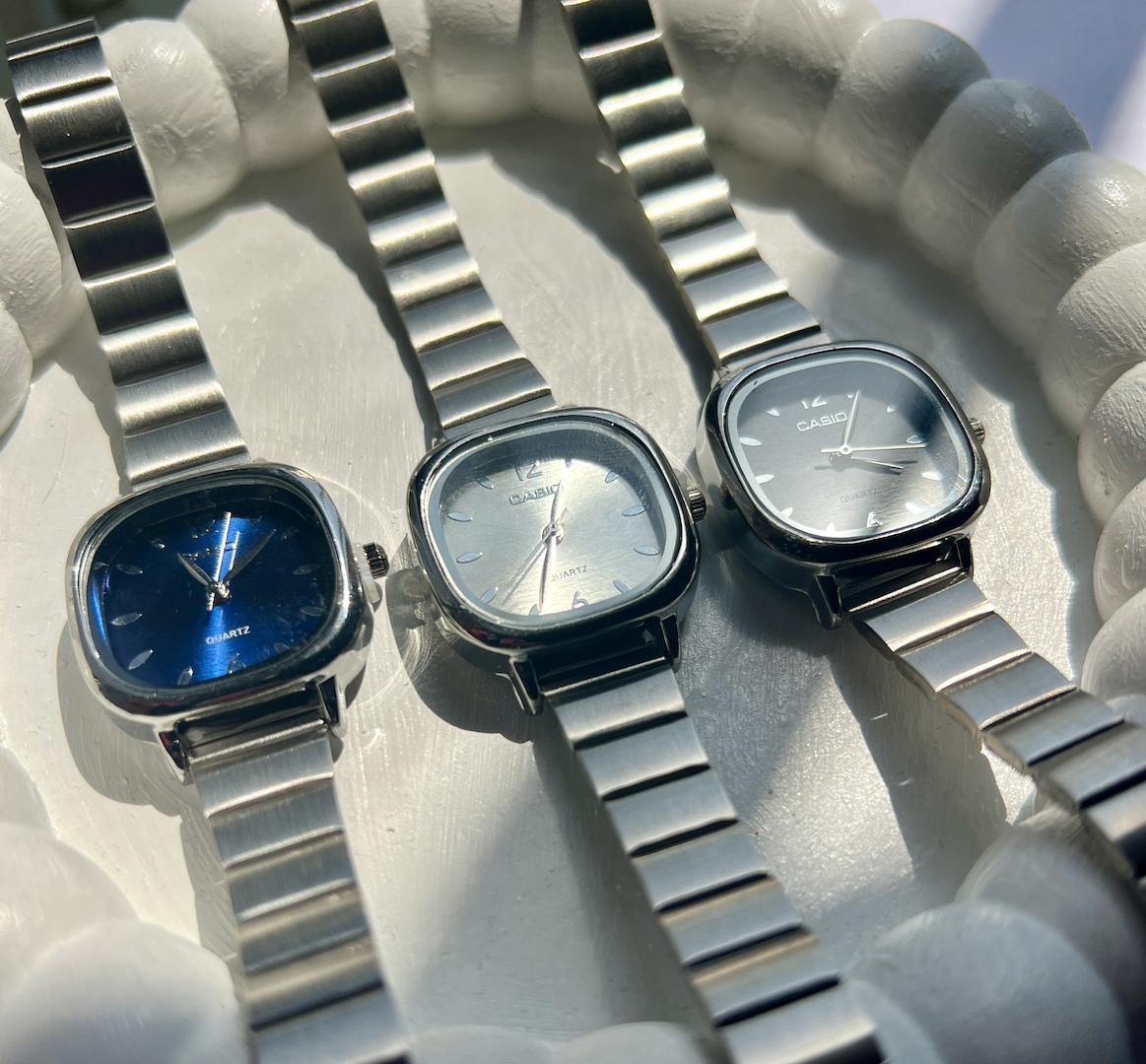 با صفحهٔ صیقلی دودی براق ،نقره ای ،سورمه ای متالیک و بند فلکسی، گزینه ای ظریف و همه کاره برای خانم هایی است که ساعت سبک و کم حاشیه می پسندند. طراحی ساده و روشن صفحه خوانایی بالا را فراهم می کند و بند فلکسی راحتی استفاده را افزایش می دهد. ترکیب استیل رنگ ثابت و موتور کوارتز، تعادل خوبی بین دوام و دقت ارائه می دهد. نکات نگهداری: از تماس با آب داغ و مواد اسیدی خودداری کنید و در صورت نیاز بند را با پارچه مرطوب و خشک پاک کنید.